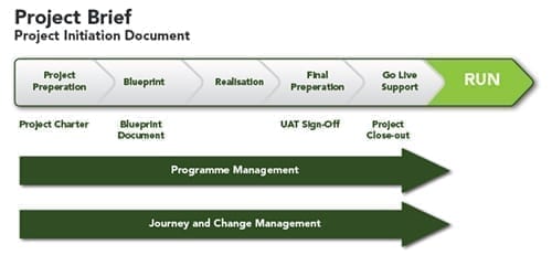 | Zimele Technologies follows the Accelerated SAP (ASAP) implementation methodology and approach for final delivery. The diagram below depicts the different phases as well as the key deliverables. The solution allows implementation of SAP ERP solution for mid-size organisation in three to six months. |